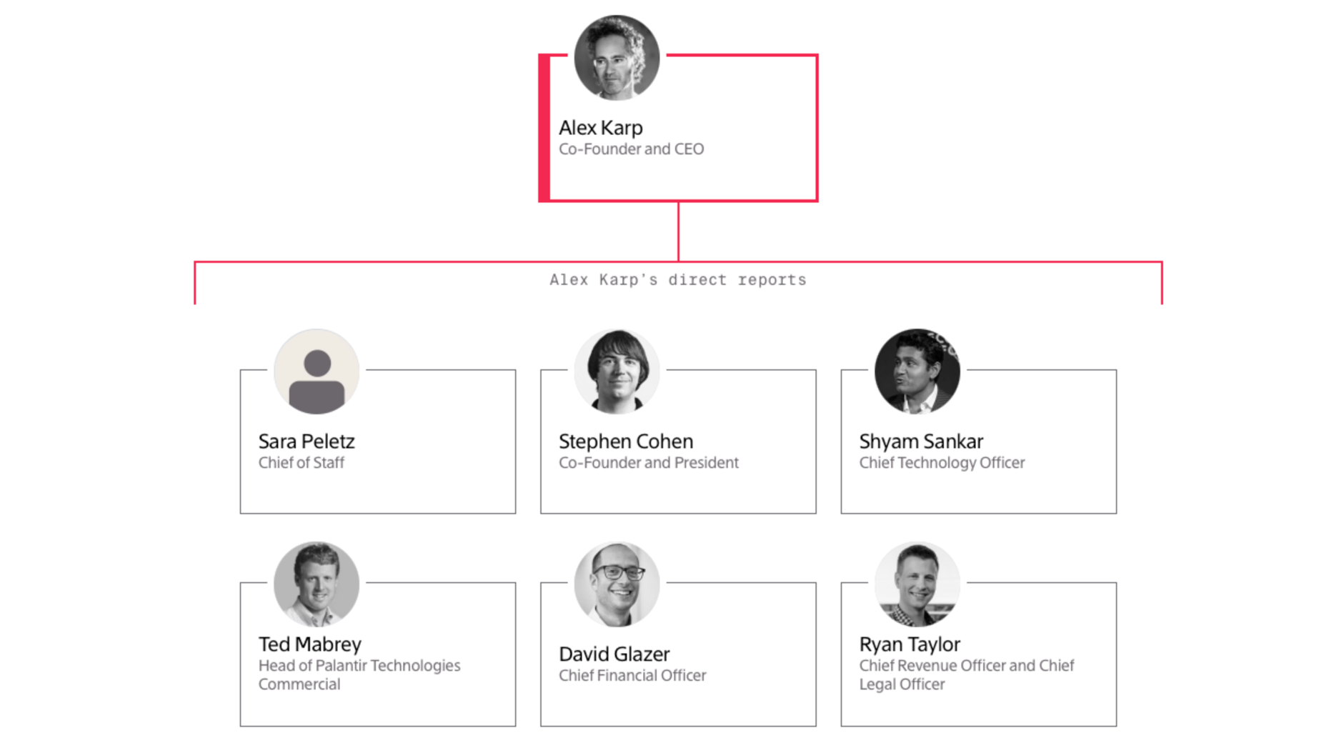 Palantir CEO Alex Karp works closely with dozens of executives who run the company's major divisions: a look at the company's unusual structure.