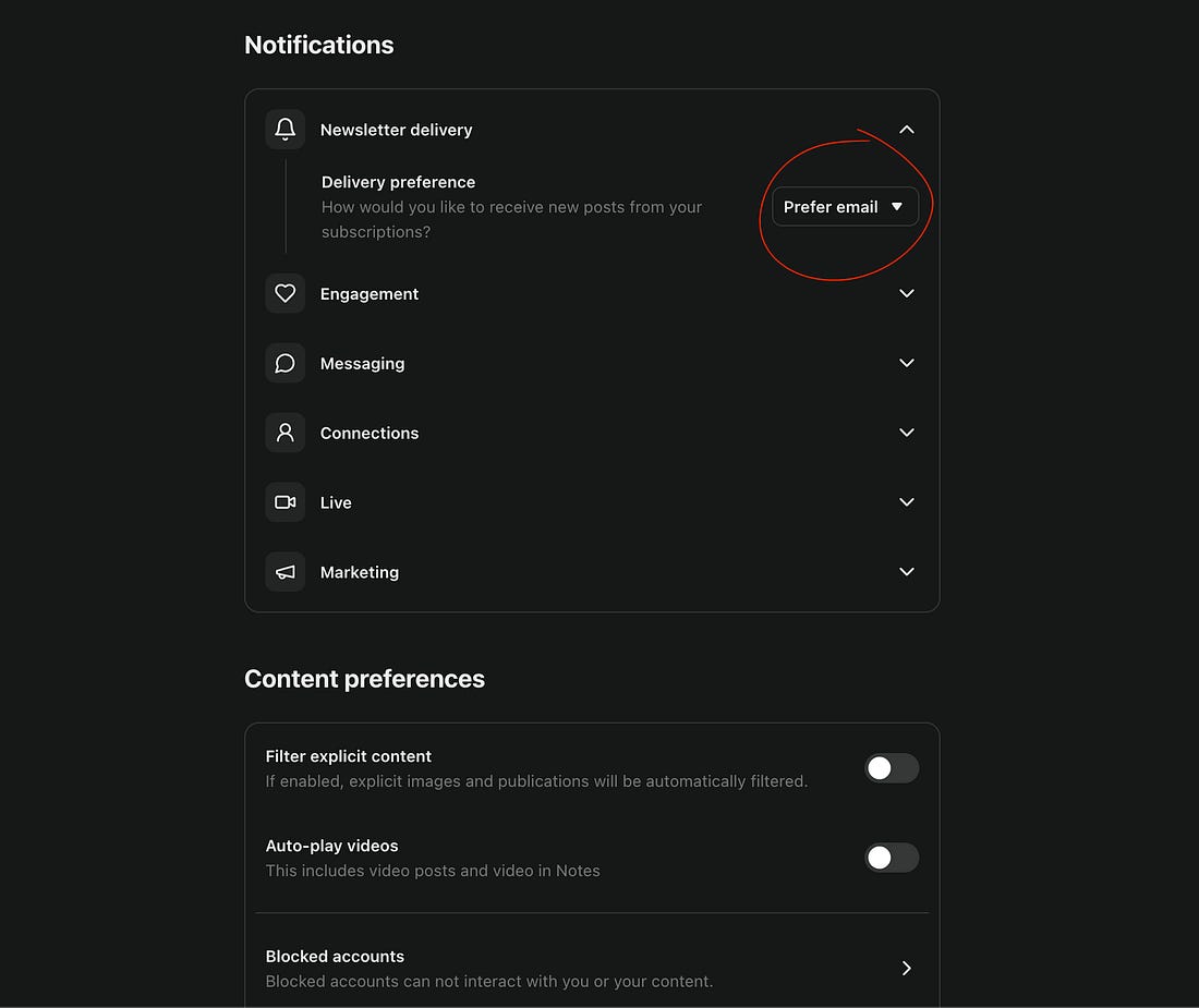 Hey friends, Thanks again to everyone who responded to my message on Monday. I hate cluttering your inbox with so much administrative junk, but these are the challenges of running a newsletter program. I promise I won’t do this often. Thank you for being patient with me. Several of you have messaged me about not receiving my newsletters in your email inbox for some time. I did some digging, and I believe this may be due to a setting in the Substack app. Here’s the thing: Substack allows you to toggle email notifications OFF to prioritize the app, and they may have encouraged you to do that at some point. If that's your preference, great! However, if you prefer to get FlakPhoto Digest by email, updating your settings is an easy fix. You can change this setting by logging in to Substack, navigating to your profile, and selecting Settings. From there, go to Notifications and select “Prefer email,” like so: Again, I apologize for this tedious interruption. I want to make sure that Substack’s tech doesn’t get between us. Questions? Please let me know. Thanks! I’ll leave you with something beautiful — Photographers Søren Solkær's starling murmurations are something to behold. You can see more here. Have a great weekend, friends. Take care! Call for Portfolios! I want to spend more time showing photography in the newsletter and less time battling Instagram algorithms, so I'm developing a new feature dedicated to highlighting photography portfolios and driving attention to photographer websites. Show me your work? |