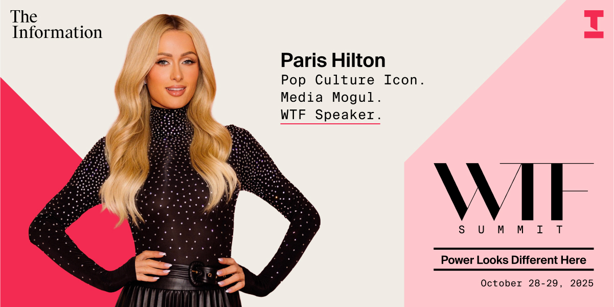 Hello, Paris Hilton is joining the WTF (Women in Tech, Media and Finance) Summit. As CEO of 11:11 Media, Hilton has built one of the most dynamic empires in entertainment, consumer products and social impact — spanning music, TV, film, publishing, fragrance, beauty, legislative change and beyond. Now, she's heading to WTF to share how she built it all – and how she's rewriting the playbook on brand building, cultural relevance, and influence in the age of AI. Join Paris Hilton and The Information's founder, CEO and editor-in-chief, Jessica Lessin for a fireside chat at this year's WTF Summit in Napa Valley. Presenting Partner