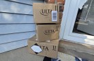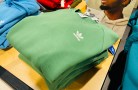Hand pulling an adidas box from a shelf