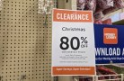 80% off clearance sign in front of christmas towels