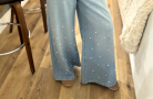 woman wearing beige crochet jacket and jeans
