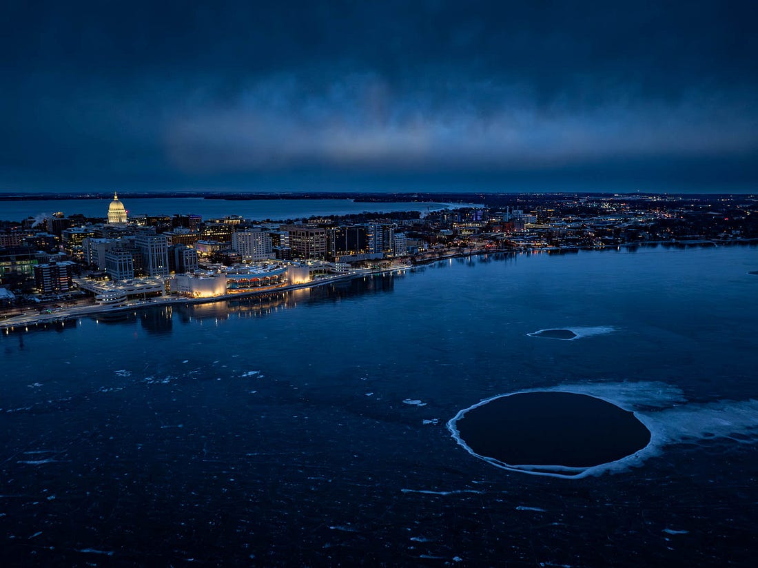 Photographers, I’m looking for Winter Pictures. Show me your work? Hey, friends, just a short note as we prepare to turn the clock ahead to 2026. We've been soaking up the winter vibes here this week — relaxing, reading, resting. It's not exactly hard to believe that another year has come to pass, but I'm reflecting on things differently than I used to. Time keeps moving, and we are doing our best to make the most of it. Be here now, right? I wanted to send my good thoughts your way and thank you again for reading FlakPhoto this year. It’s been a good year with some creative challenges and personal growth. I’m looking back at 2025 and some of the things I posted here over the previous twelve months — below are five of my favorites. Perhaps you’ll find something to read as you’re nursing your coffee or tea tomorrow morning. One more thing… Special thanks to photographer Pete Olsen for sharing the picture at the top with me. That’s a drone image of the Madison isthmus, where we live. Please check him out when you have some time. You can see more on his Instagram. Thanks, Pete! There are too many distractions in the world these days, and it means a lot to me that you continue reading my posts — thanks again for looking. Happy New Year! Do you want to contribute photography or writing to FlakPhoto? Please feel free to email anytime. I’m always looking and love seeing new work. Cheers! |