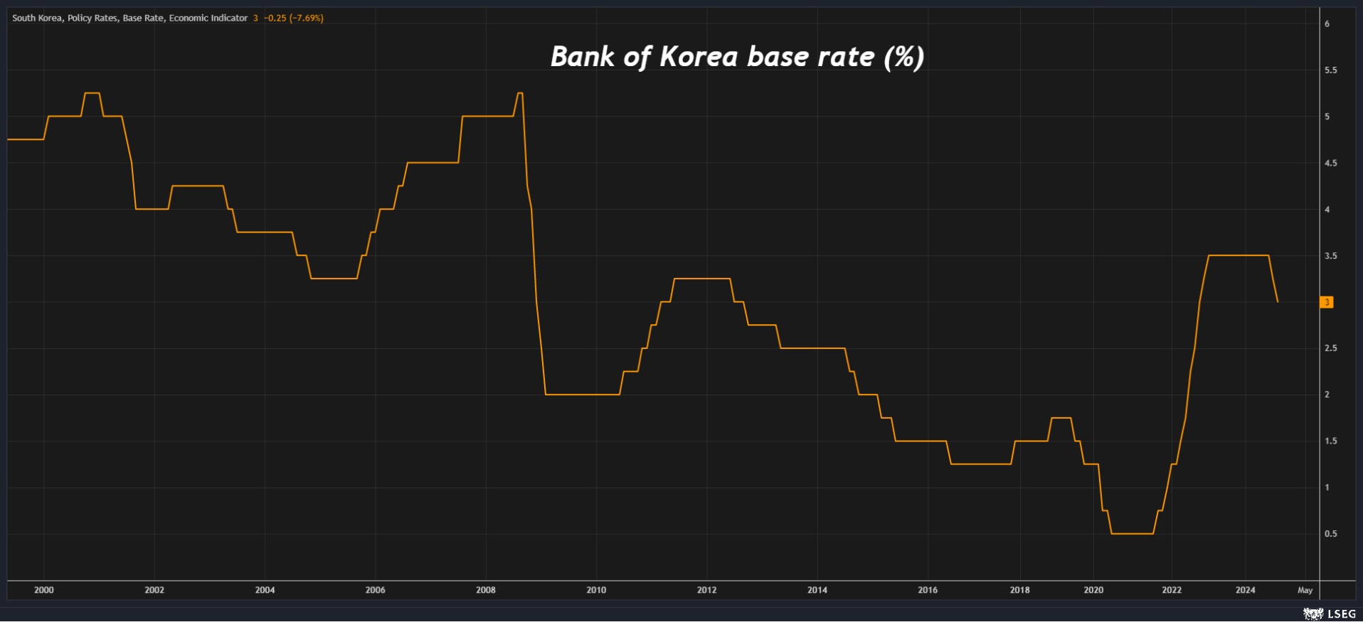 The BoK is expected to cut its base rate by 25 basis points to 2.75%, according to 27 out of 34 economists polled by Reuters, with the remaining seven forecasting no change.