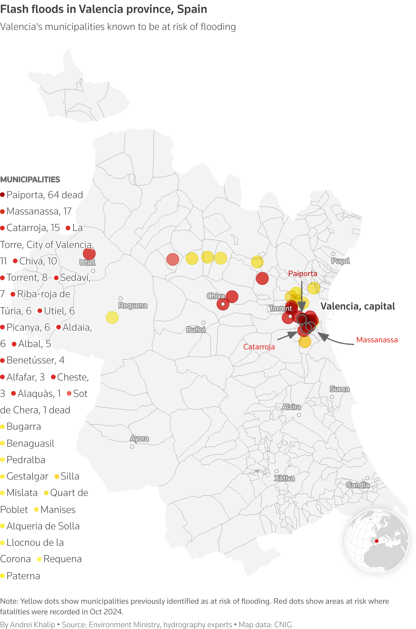The European Commission said it has approved an aid package of 945 million euros ($1.1 billion) to help Spain recover from one of its deadliest flash floods it suffered in 2024. Roughly 240 people died in the country after torrential rains last October triggered floods that swept through eastern and southeastern Spain. The most severely hit area was Valencia's southern suburbs, where more than 220 people died. |