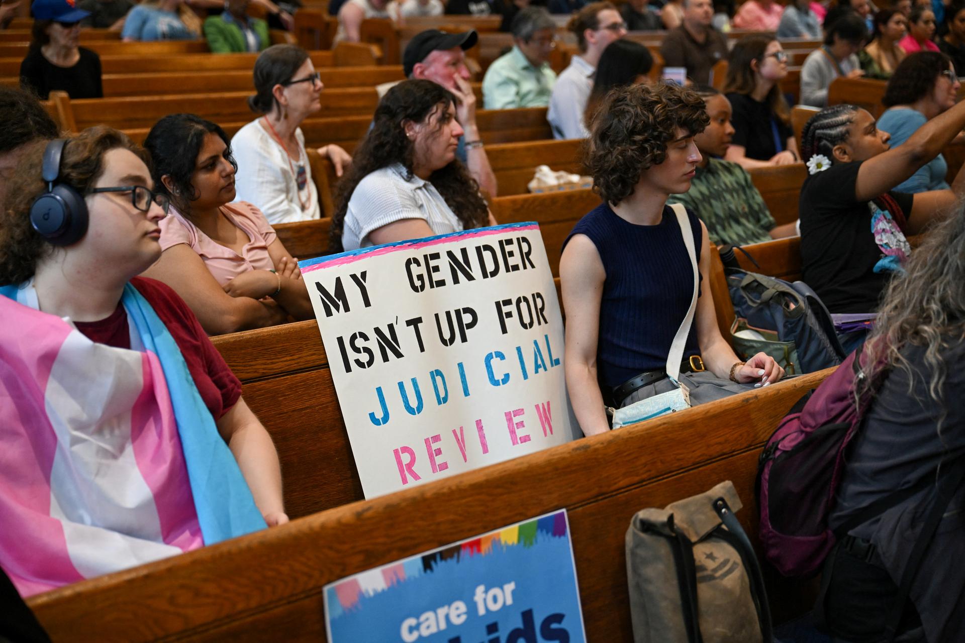Advocates gather in a church near the U.S. Supreme Court after a ban on gender-affirming medical care for transgender minors. Washington, D.C., U.S. REUTERS/Annabelle Gordon |
