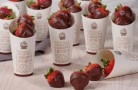 white paper containers filled with chocolate covered strawberries