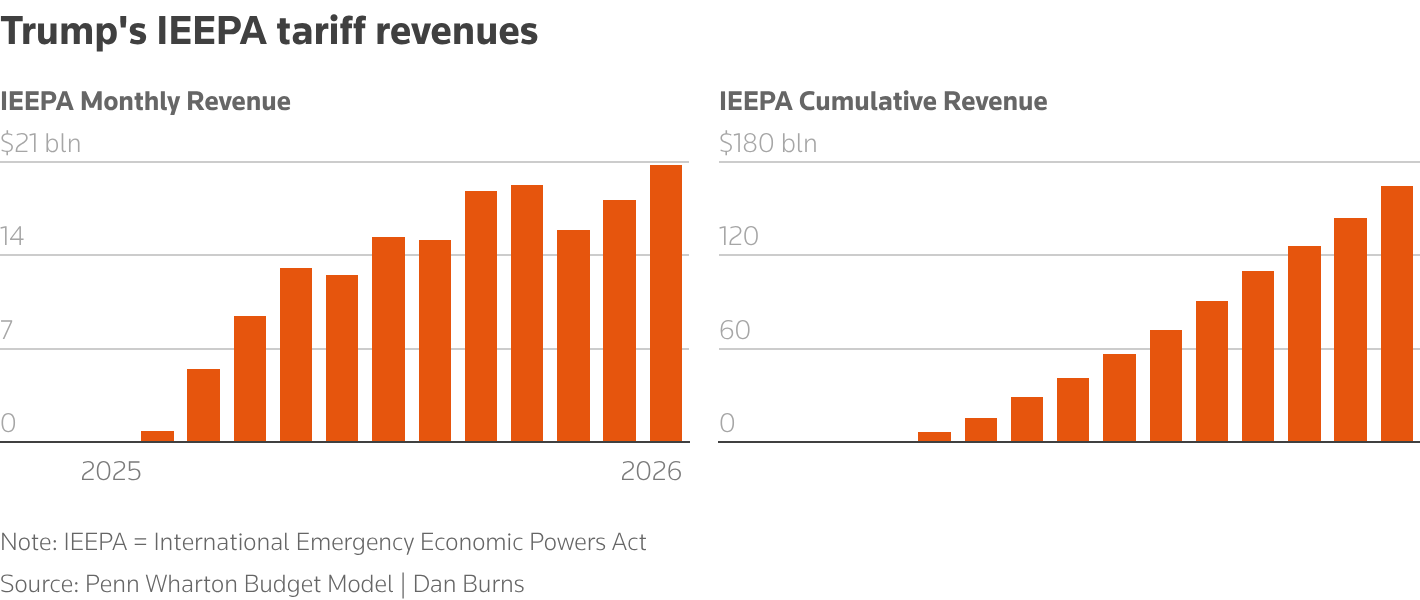Then there's additional confusion about Treasury revenues and a potential wave of rebates, doubts that are bound to undercut assumptions that tariff income will hit roughly $300 billion this year. This could possibly bury any notion of a new round of stimulus checks to U.S. households and force the Treasury to borrow more bills.